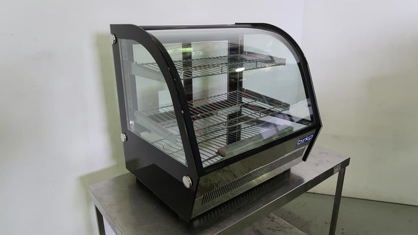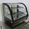 C/Top Curved Glass Cake Display. Features 3 Tier, Internal Lighting, 2 x Rear Glass Sliding Doors, Digital Temp Controls, Surface Scratches. Climate Class Tropical ,S/S & Black Finish. 700mmW x 595mmD x 689mmH 64kg. 10 Amp 1 Phase.